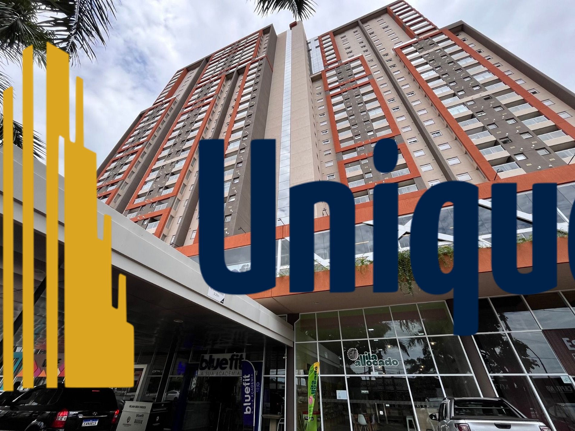 Com comércio em baixo do prédio: salão de beleza, cafeteria, wine, bluefit, loja de suplementos....
